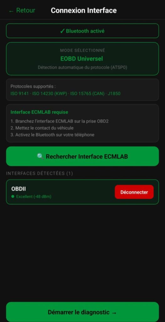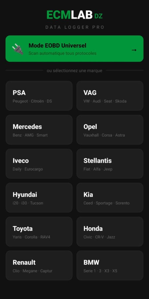 L’application Data Logger ne pourra que fonctionner avec l’interface et en Bluetooth By Ecmlab « marque déposée »